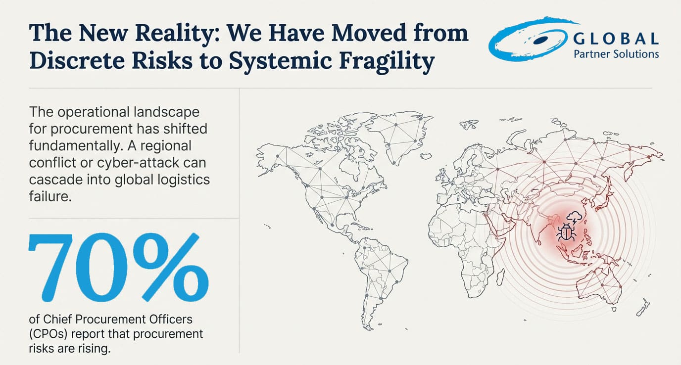The operational landscape for procurement has shifted fundamentally. We have moved from a world of discrete risks to a multipolar environment defined by systemic fragility—where a regional conflict or cyber-attack cascades into global logistics failure.